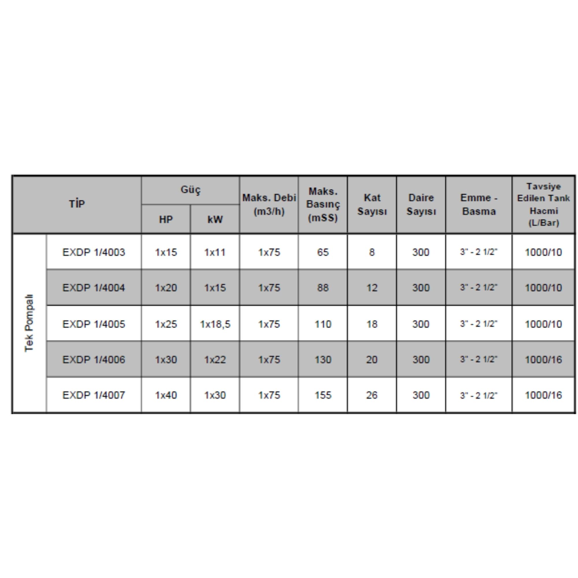 EXDP 1/3000 SERİSİ HİDROFORLAR