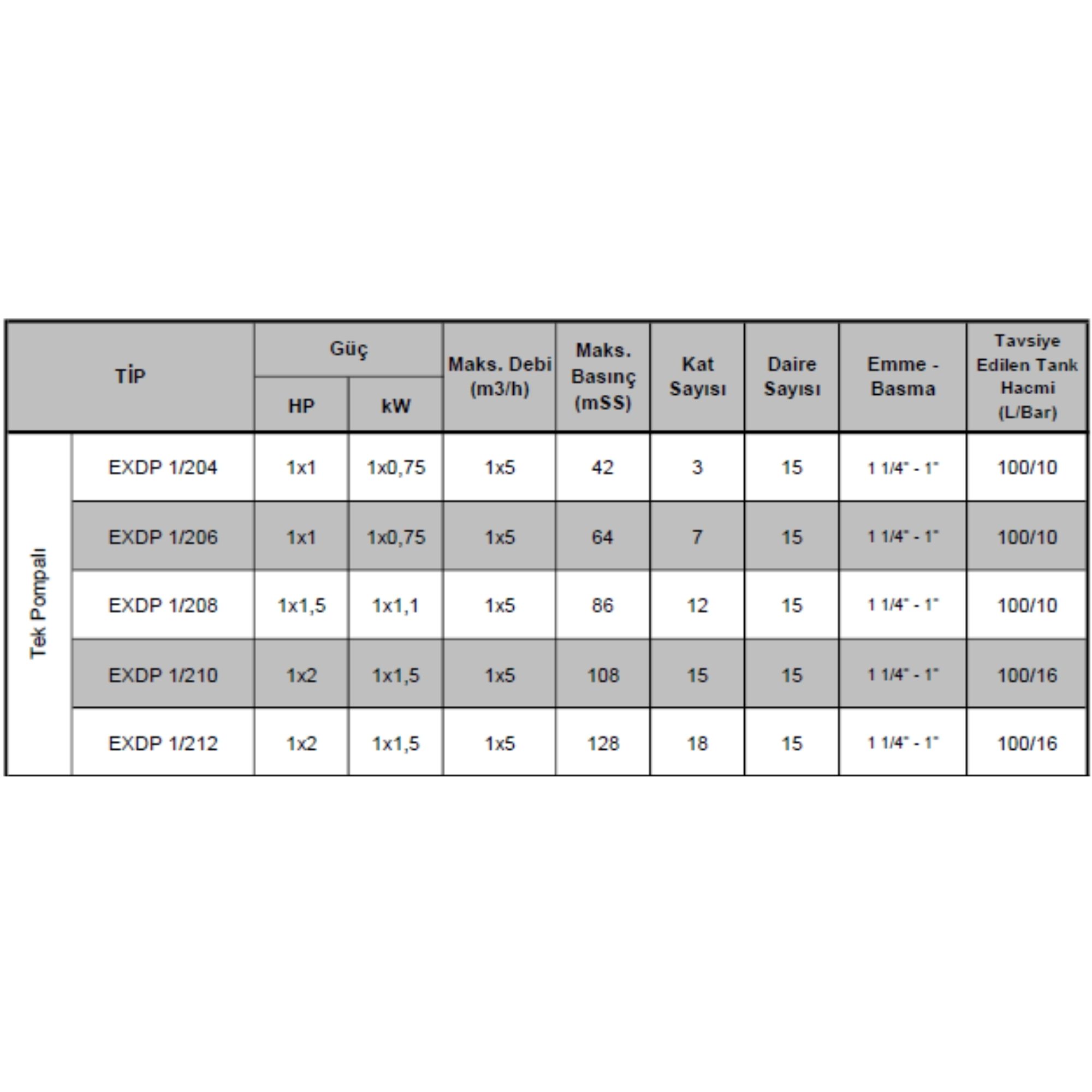 EXDP 1/1500 SERİSİ HİDROFORLAR